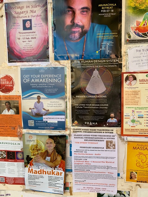 My routine this morning was slightly different in that after breakfast I took a walk to a local tours agent – Tiru Travels – in order to book a ticket on the Shatabdi Express from Bangalore to Mysore for 20/2 which is in 3 days time. Not only that, I also needed to sort out a taxi from Tiruvannamalai to Bangalore on 19/2 for which I had previously been quoted a price of 4300 rupees for a city drop. Indeed it would be a city centre drop because I had booked a room for the night in Highgates Hotel on Church Street which is right in the middle of town and running parallel to MG Road. By the time I got to the agent’s office the young man behind the desk told me I would have to come back at 10.30 as he was not able to do the bookings for me because his elder brother looked after all of that and he wasn’t available at the moment. That’s the kind of thing which happens in India – main man out of station, albeit temporarily, so nuthin’ doin’ – which meant I had no choice but to just nod my head and walk back to the ashram empty handed, even though what I really wanted to say at that precise moment in time was “Well, why the fuck are you bothering to open then?” Guess it was no big deal, but I doubted I would go out again for 10.30 because by then I would be at the satsang with Swamiji, so I would go later on, maybe after lunch at 12.30. That seemed like a plan, because then it would not disturb my ashram schedule.